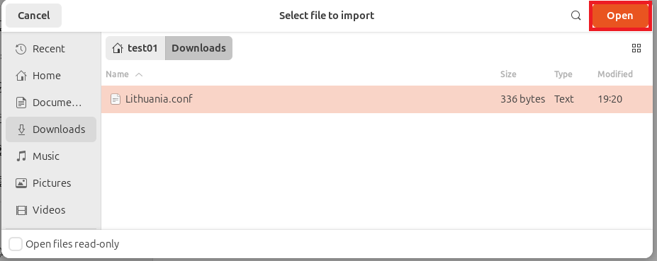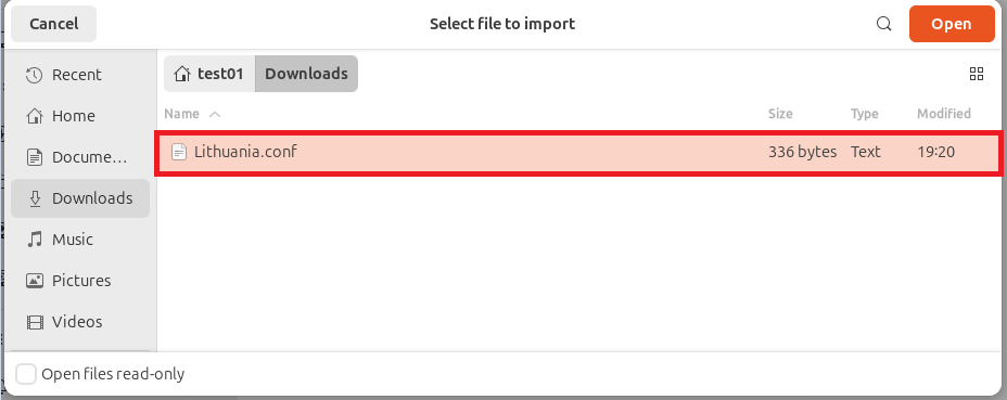 4. Navigate to the directory where you saved the .conf file and select it:
