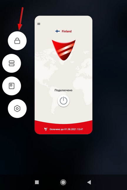 1. «Закрепление» приложения. Нужно сделать так, чтобы над приложением Red Shield VPN в списке запущенных приложений появился замок.