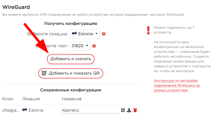 Затем выберите локацию и порт, по которым вы хотите подключиться, и нажмите «Добавить и скачать».