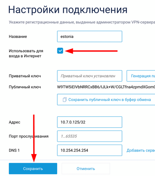 7. Установите галочку «Использовать для входа в Интернет» и нажмите кнопку «Сохранить».